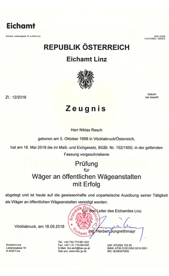 Aufgrund der Wiegung durch einen beeideten Wiegemeister