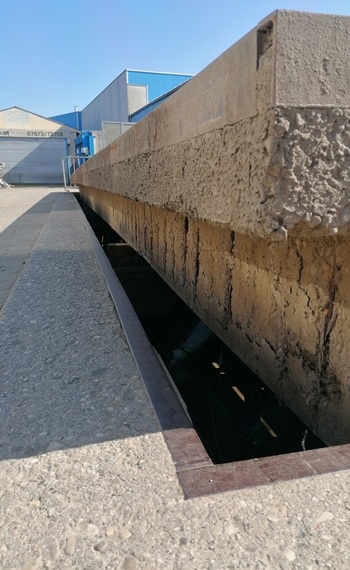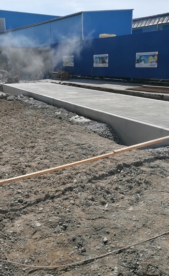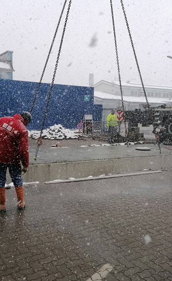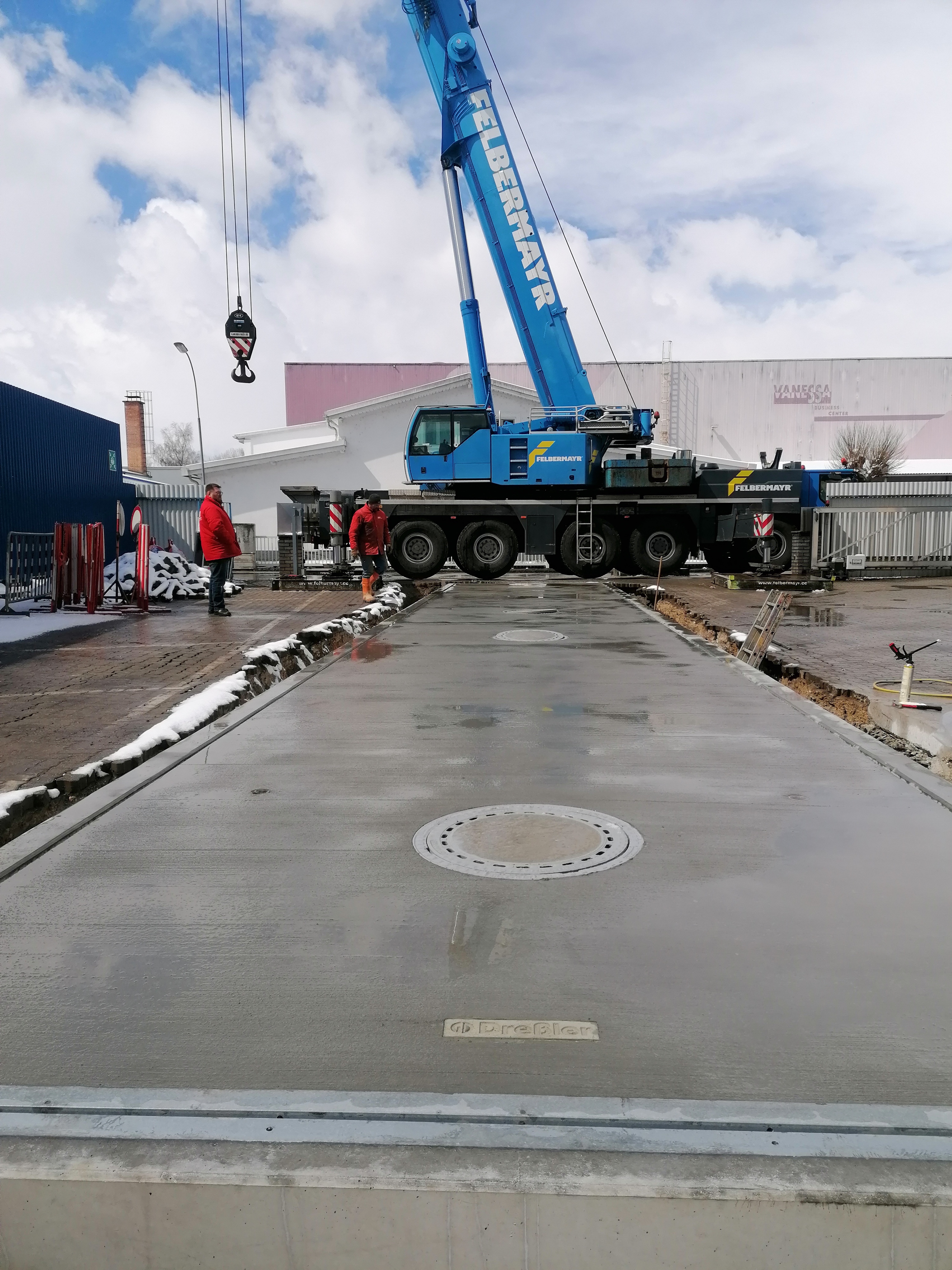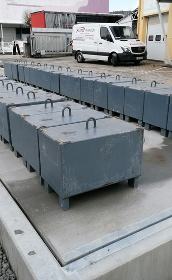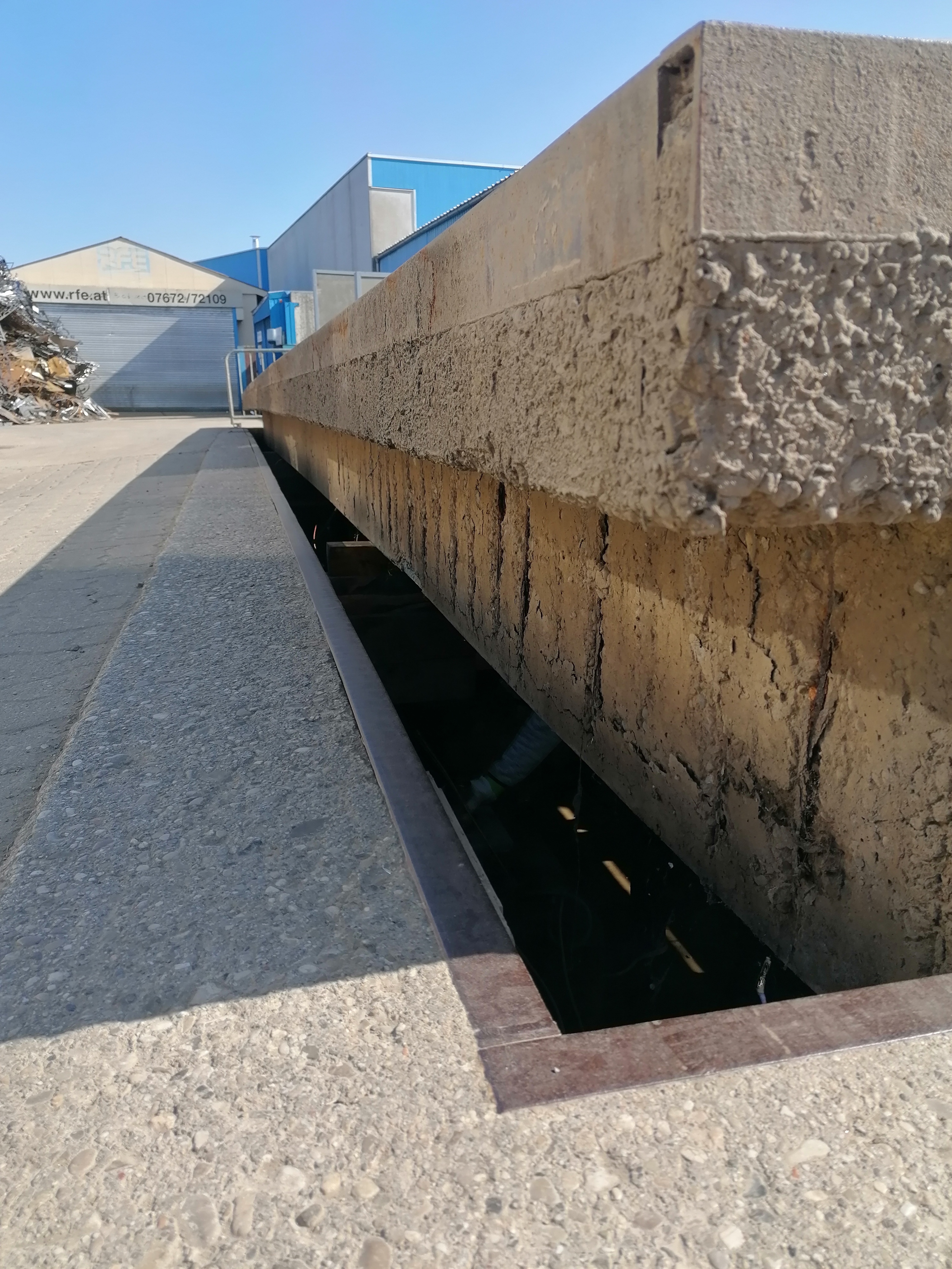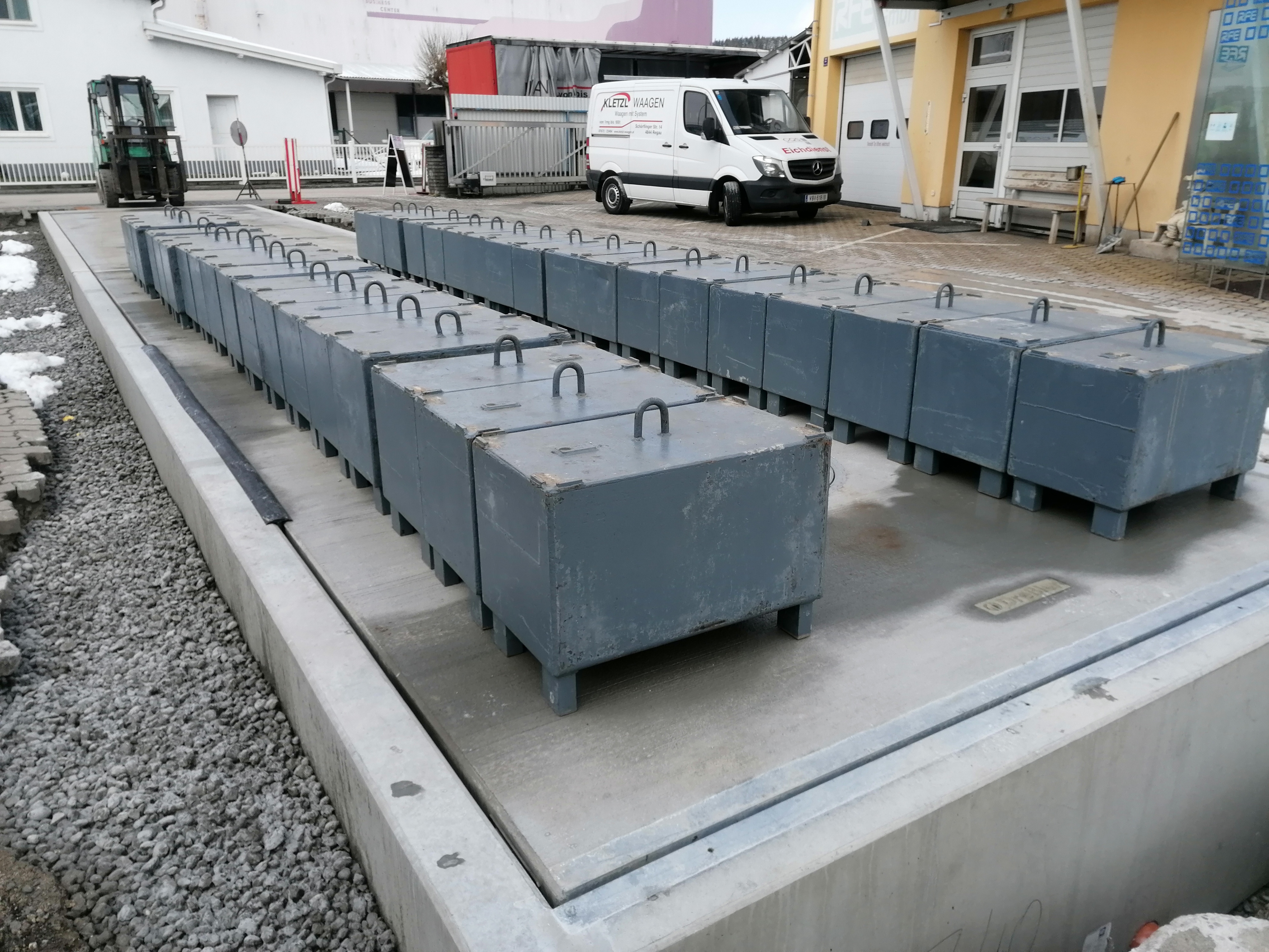 Die Brückenwaage ist unterteilt auf zwei Teile mit jeweils 9 Meter und kann auf jeder Waage 40 Tonnen wägen.