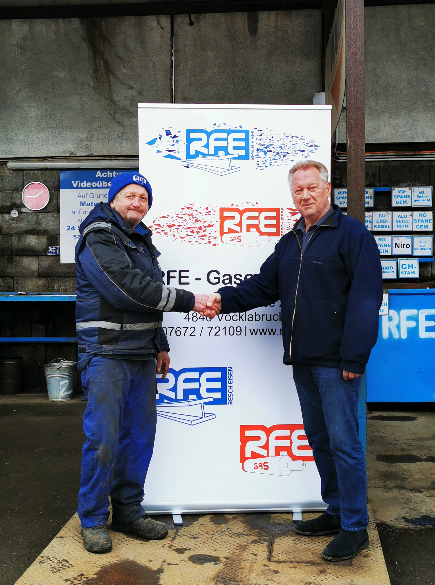 Geschäftsführer der RFE-Gase GmbH, Hr. Alois Resch, verabschiedet unseren langjährigen loyalen Mitarbeiter, Schachinger Herbert in die Pension!