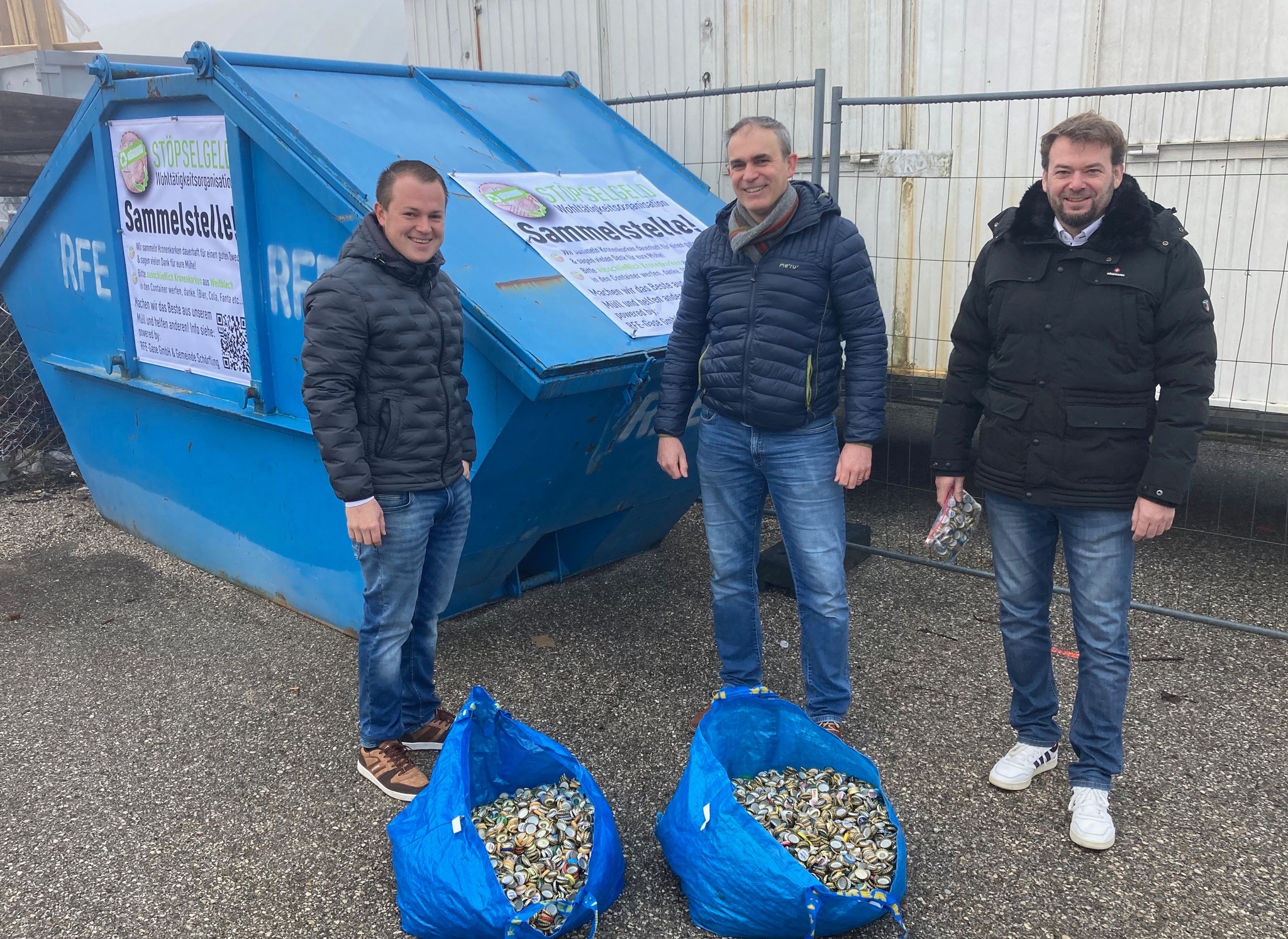 Dank der Gemeinde Schörfling (im Bild rechts Bürgermeister Gerhard Gründl) und Fa. RFE Gase (Resch Eisen / im Bild Niklas Resch) kann Stöpselgeld den nächsten Schritt gehen. Oliver Maiberger (Bildmitte) und Alex Hirner, die Gründer von Stöpselgeld sagen Danke für die rasche und unbürokratische Umsetzung. Der neue Sammelcontainer steht in Schörfling beim Glassammelplatz (Gahberggasse, Umfahrung Schörfling) und darf ab sofort mit Kronenkorken (Weißblech) sowie sortenreinem Alteisen gefüllt werden. Mit dem Reinerlös des Warenwertes unterstützt Stöpselgeld soziale Einrichtungen in unserem Bezirk und dankt an dieser Stelle den fleißigen SammlerInnen die seit nunmehr 3 Jahren insgesamt 4300 KG für den Guten Zweck gesammelt haben. Nach einer jährlichen Steigerung von mehreren hundert Kilogramm pro Jahr sollte 2024 die 2000 KG Marke fallen. Getreu dem Motto: "Machen wir das Beste aus unserem Müll und helfen anderen!“ freut sich Stöpselgeld auf eure Unterstützung.
